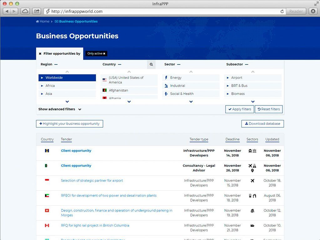 * Check out our InfraPPP Glossary to better understand the various terms used on the platform.